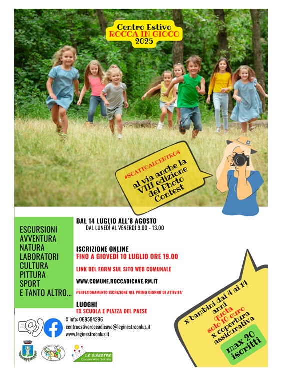 - ISCRIZIONI: online dal 07 Luglio al 10 Luglio 2025 ore 19.00. Verranno pubblicate sul sito istituzionale del Comune attraverso modulo Google e perfezionate nella giornata di inserimento al Centro.