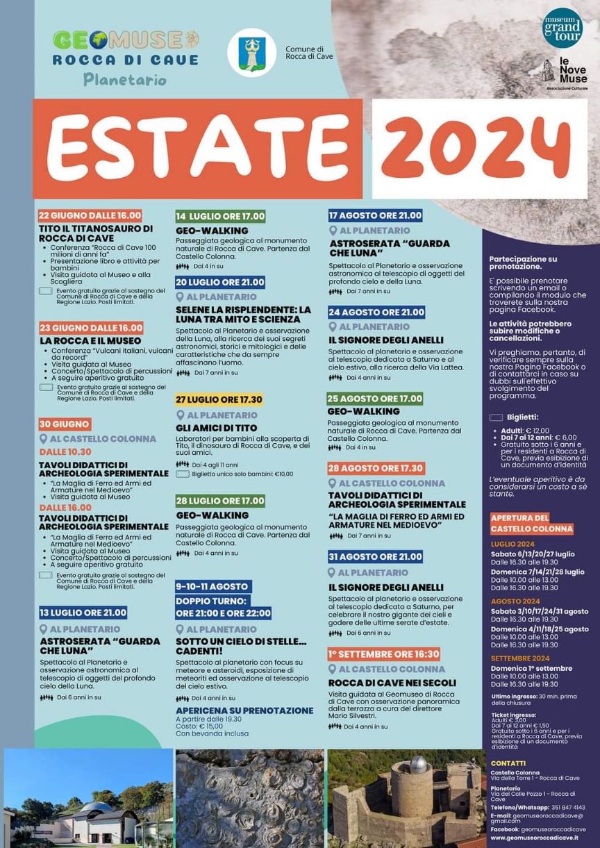Programmazione estiva 2024 per il Geomuseo e il Planetario, con attività didattiche, visite guidate e laboratori per famiglie e studenti.